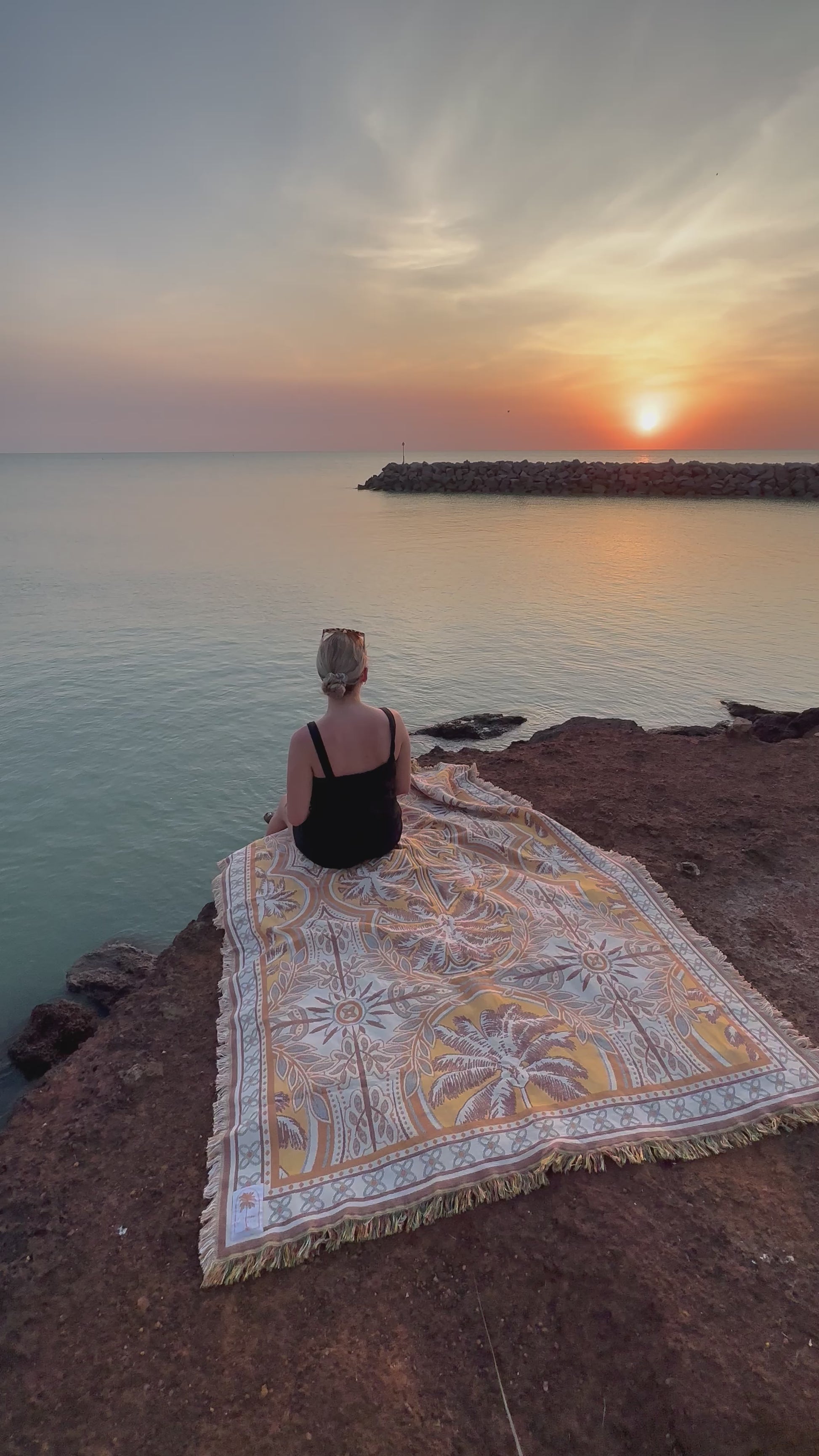 The 100% recycled cotton & Woven beach throw is an eco-friendly and sustainable choice for any beach lover. Australian designed, this beach throw features a beautiful unique design that will make you feel instantly relaxed & comfortable. Aside from its stylish design and eco-friendly materials, this beach throw is also multi-functional & Double extra large in size. You can use it as a beach blanket, picnic mat, tablecloth, towel, blanket for your bed, in the car while you're on road trips or while you're camping. It is machine washable and dries quickly, making it easy to clean and reuse for your next adventure.